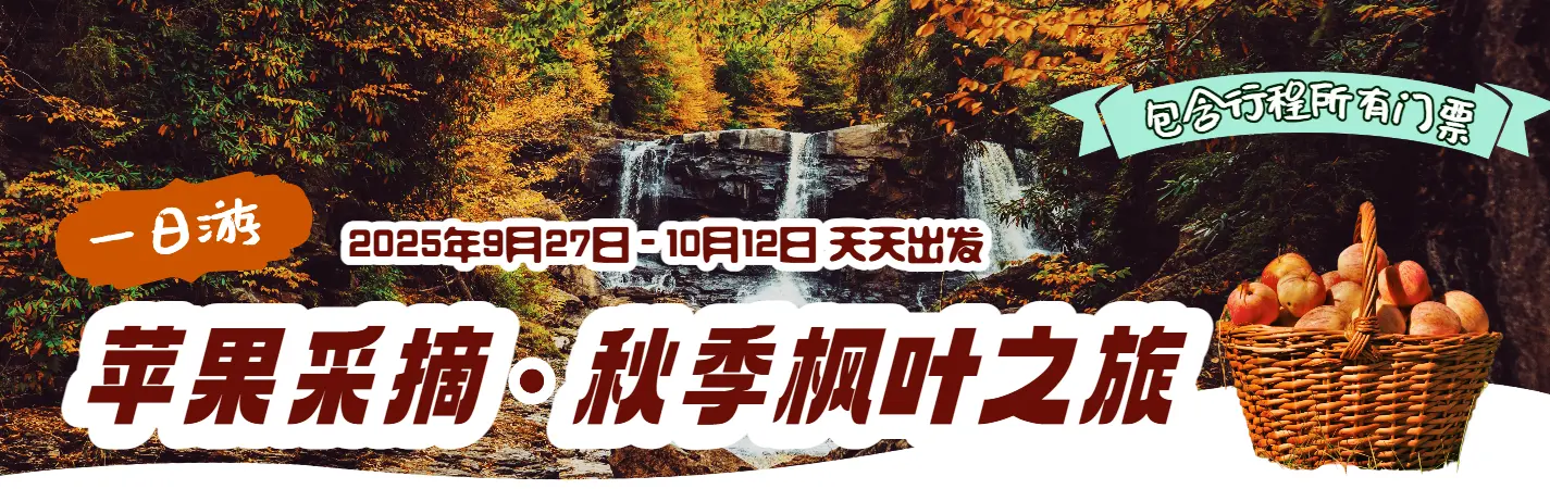 1日秋季赏枫游-丹伯里铁路博物馆-肯特瀑布-苹果采摘 (纽约出发)